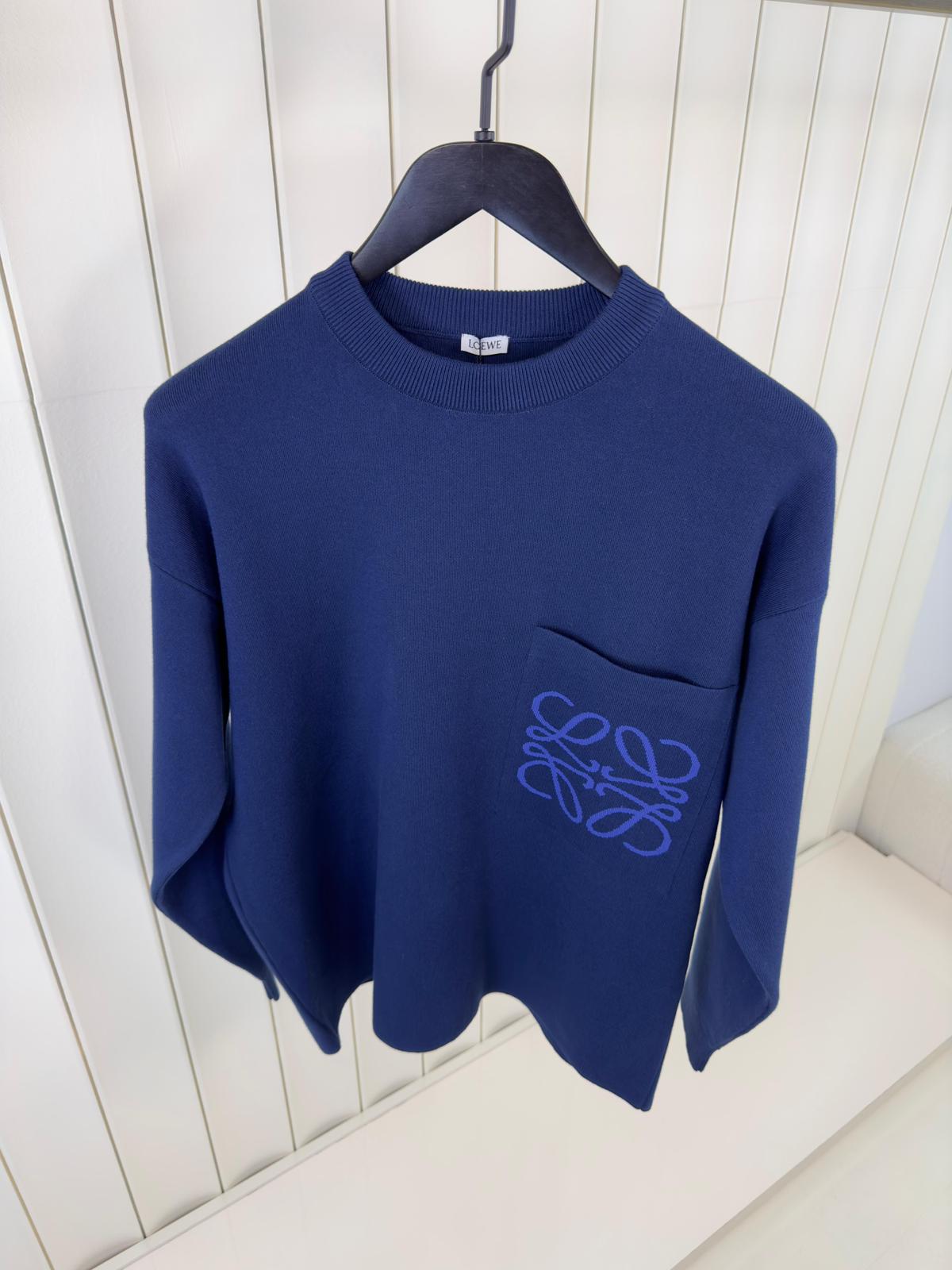 Loewe Anagram Embroidered Knitted Sweater Blue